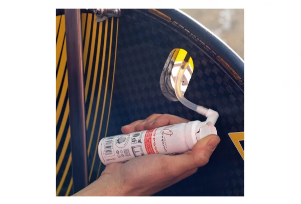 La bombe anti-crevaison Effeto Mariposa Espresso est une solution simple et efficace lorsque vous voulez repartir sans réparer votre chambre à air/pneu ou boyau. La réparation est assuré par une mousse à base de Caffelatex sans ammoniaque, optimisé pour un usage sous pression. En cas de présence de Caffelatex à l’intérieur du pneu, son action sera renforcé par la bombe Espresso.