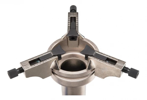 L’outil est entièrement ajustable, permettant un positionnement précis et indépendant des lames autour de du cône de fourche. Le positionnement indépendant de chaque lame offre plus de flexibilité, évitant d’être géné par les fourreaux de fourches.
