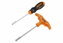 Set de clés à rayons, pour tète de rayons carré 3.6 mm. Visse et serre les têtes de rayons de façon ultra rapide et apporte suffisamment de tension. La poignée en « T » permet de serrer fermement à la fin.