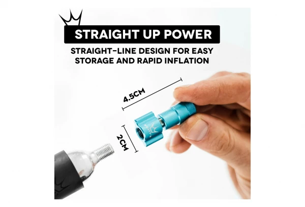 Peaty’s a conçu son gonfleur CO2 droit plutôt que plié à 90 degrés. Cette conception en ligne droite permet un flux d’air plus rapide pour un gonflage rapide et crée moins de contraintes sur vos valves sans chambre à air lorsque vous l’utilisez. Il est aussi petit et léger, donc facile à transporter dans votre poche, votre sac ou attaché à votre vélo.