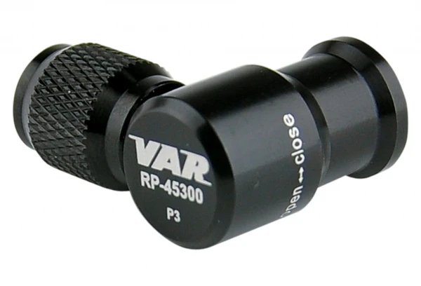 Adaptateur coudé à 90° Var permettant de goufler votre chambre à air ou votre pneu tubeless plus facilement à l’aide d’une cartouche de CO2, compatible Schrader et Presta et avec seulement 13g, cet accessoire peut être emporter partout avec vous avec zero soucis de compatibilité !