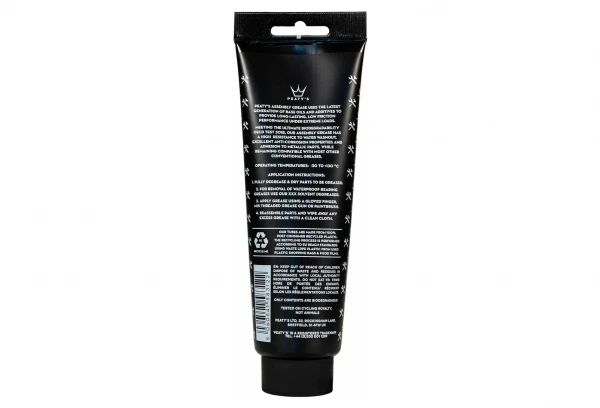 La graisse Peaty’s est idéale pour une utilisation dans les jeux de direction, les boîtiers de pédaliers, les roulements, etc. La graisse d’assemblage Peaty’s utilise la dernière génération d’huile de base et d’additifs pour fournir des performances durables et maintenir des faibles frictions.