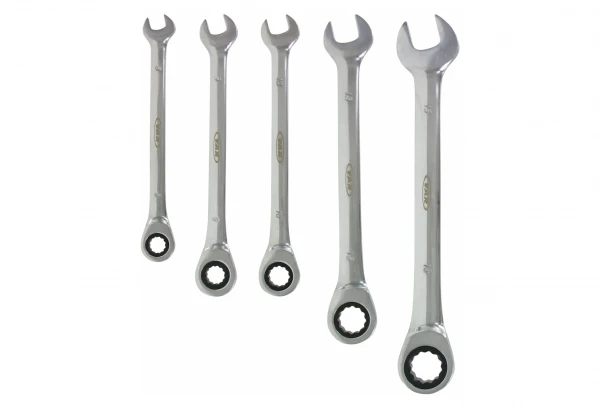 Clé à cliquet en acier chrome vanadium et finition polie et chromée.