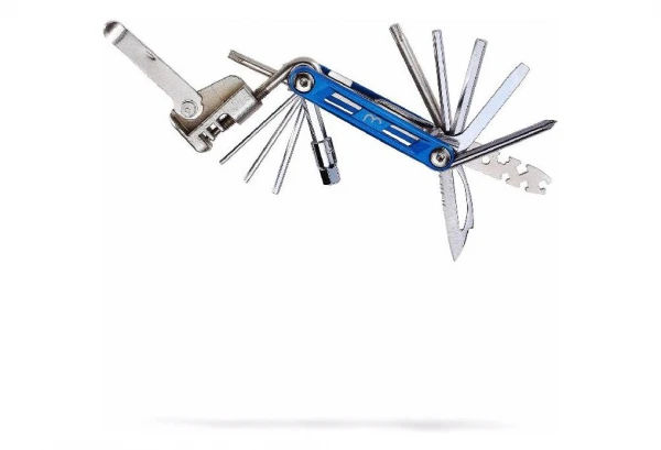 Clés fonctions: 2, 2.5, 3, 4, 5, 6 et 8mm. Tournevis cruciforme. T25/T30. Dérive chaine. Clés à rayon. Couteau.