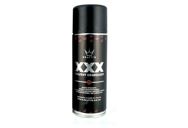 Le Peaty’s XXX est un spray dégraissant puissant, de force maXXX, soluble dans l’eau et facilement biodégradable, conçu pour éliminer complètement les graisses, les cires, les huiles et les taches de bitume et de goudron. Il s’utilise sur des surfaces métalliques, mais également pour sur la fibre de carbone et de nombreux autres plastiques et surfaces peintes.