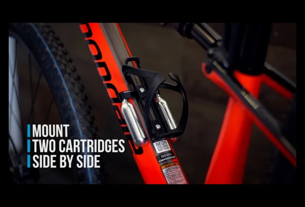 Ce qui rend le support de cartouche CO₂ Lyne unique, c’est sa conception réglable à verrouillage. Cela permet d’ajuster l’espacement entre les cartouches pour obtenir un ajustement parfait et ajusté sur chaque cadre. Le support peut également être retourné pour changer la position des cartouches.