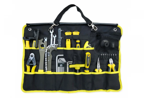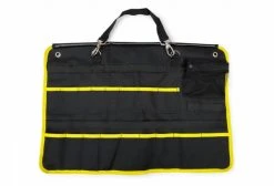 Vous avez hâte que vos outils soient organisés, protégés et prêts à l’action ? Alors, régalez-vous avec le Pedro’s Burrito Tool Roll II. Cette trousse à outils de qualité professionnelle présente une grande surface (60 x 40 cm) avec des poches renforcées de différentes tailles, des poches élastiques polyvalentes, des poches élastiques pour embouts hexagonaux et une grande poche en filet à fermeture Éclair pour ranger en toute sécurité les petites pièces ou les objets personnels. Elle dispose également d’un système unique de monture en X qui transforme le rouleau flexible en une palette d’outils rigide. Déroulez la Burrito Tool Roll II, installez les tringles de la monture, suspendez-la à un support de réparation ou à une valise à outils, et mettez-vous au travail. Lorsqu’il est temps de remballer, l’extérieur imperméable et le rabat interne protègent vos outils et les sangles velcro permettent de tout garder en ordre.